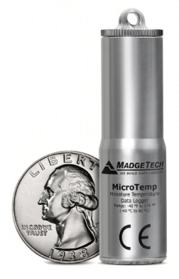 The MicroTemp is a miniature, submersible, self-contained temperature recorder. Only 2.6 in (66 mm) tall and 0.7 in (18 mm) in diameter, this recorder can easily fit into the smallest spaces. It can even fit down the neck of most beverage bottles! Don’t let the diminutive size fool you — this is an industrial grade instrument which boasts an accuracy specification of ±0.5 ºC and will operate in temperatures from -40 ºC to +80 ºC. Its food grade stainless steel casing makes it inert to most com-mon fluids and gasses. It operates with user-replaceable batteries for up one year (typical use) and downloads data (32,767 readings) quickly to your PC.