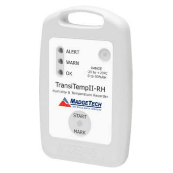 The TransiTempII-RH is a stand alone, rugged humidity and temperature recorder. This device is ideal for monitoring and recording the temperature and humidity of products during storage and shipping.