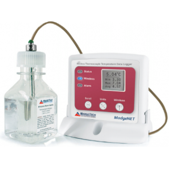 MadgeTech’s Vaccine Temperature Monitoring System (VTMS) is ideal for the continuous measure-ment and data logging of temperature sensitive vaccines or pharmaceuticals in refrigerators, freezers, and coolers. The system includes an NIST traceable RFTCTemp2000A data logger with thermocouple and Glycol bottle. Additionally, the RFTCTemp2000A data logger in the VTMS system has a convenient LCD to ensure temperature parameters are met, in real time. Starting, stopping and downloading from the device are all performed wirelessly using the RFC1000 wireless transceiver. The current reading, minimum, maximum and average statistics can all be obtained through the display.