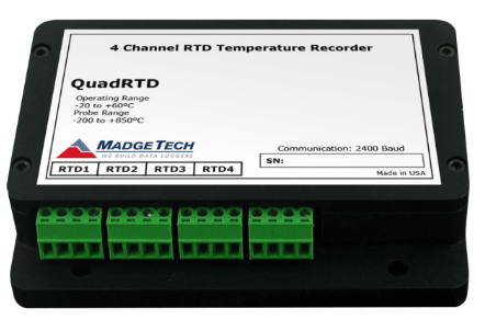 The QuadRTD is a 4 channel, battery powered, stand alone, RTD based, precision tempera-ture recorder. This is an all-in-one compact, portable, easy to use device that will measure and record up to 21,845 measurements per channel. The storage medium is non-volatile solid state memory, providing maximum data security even if the battery becomes discharged. The device can be started and stopped directly from your computer and its small size allows it to fit almost anywhere. The QuadRTD makes data retrieval quick and easy. Simply plug it into an empty COM or USB port and our user-friendly software does the rest.