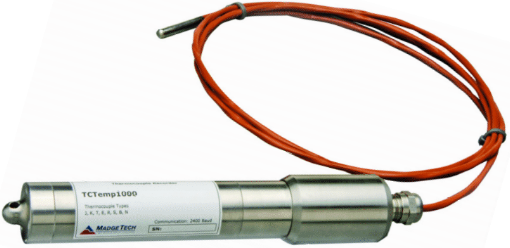 The TCTemp1000 is a rugged, submersible, battery powered, thermocouple based temperature data logger. This is a stand-alone, compact, portable, easy to use device that can measure and record data for up to 16,383 measurements per channel. The storage medium is non-volatile solid state memory, providing maximum data security even if the battery becomes discharged. Its real time clock ensures all data is time and date stamped. This data logger can be started and stopped directly from your computer. The TCTemp1000 makes data retrieval quick and easy even in harsh environments and its small size allows it to fit most anywhere. Simply plug it into an empty COM or USB port and our user-friendly software does the rest.