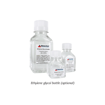 The Therm•A•Lert-P probe can be mounted inside an ethylene glycol bottle. When placed in a chamber, the temperature of the ethylene glycol is measured rather than air temperature. This more accurately represents the temperature of the contents inside the chamber, and prevents false alarm triggers when the chamber door is opened and closed. The glycol bottles are available in 30 ml, 60 ml and 250 ml sizes.