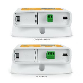 The RFVolt2000A-160mV model is a wireless, differential voltage data logger. The device is equipped with a three position terminal block to allow for a positive, negative and ground connection. This allows the measurement of the voltage difference between two signals tied to the same ground.