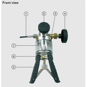 The reference instrument is screwed directly to the top of the pump, and the test item is connected using a connecting hose with a G ¼ female thread, included in delivery. The CPP700-H is delivered with a Minimess® 1620 test item hose system as standard.