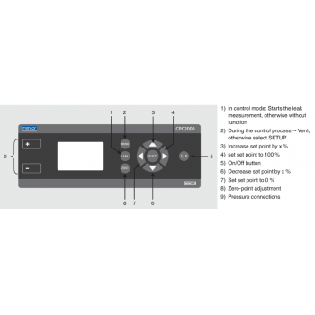 The model CPC2000 low-pressure controller is a mains or battery-operated pressure controller with internal, automatic pressure generation and pressure reference. The pressure generation is achieved using an integrated, electric pump, which makes a positive and/or negative pressure available on both the tube connections. As soon as the instrument is switched on, a zero-point adjustment is automatically carried out, so that a zero-point drift is eliminated.