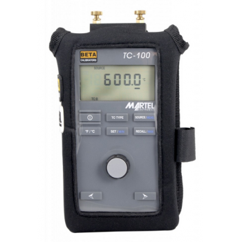 The TC-100 Thermocouple Calibrator provides high accuracy source and measurement of ten common thermocouples, as well as mV. The TC-100’s accuracy of ±0.3°C for Type J T/Cs includes all errors, at resolutions of ±0.01°C or °F in measure mode and ±0.1°C or °F in source mode. Features including MIN/MAX re-call in measure mode, three setpoints per thermocouple range, a large knob for decade control of the output in source mode, and the ability to accept bare T/C wires in addition to mini-plug inputs, makes the TC-100 an accurate, easy-to-use instrument for all your thermocouple calibration needs.