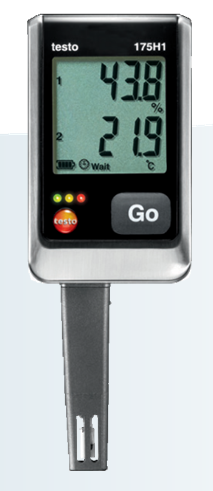 With its long-term stable humidity sensor, the testo 175 H1 is the professional data logger for the monitoring of temperature and relative humidity in work and storage rooms. The external humidity probe (stub) stands out thanks to faster reaction times in comparison to probes installed inside the housing. Energy savings are an important topic for buildings. The free ComSoft Basic software allows fast programming of the data logger as well as easy data analysis.The testo 175 H1 continuously records temperature and humidity values and, in addition to temperature and humidity, also shows the dewpoint in the display if required. The indoor climate is thus monitored, emphasizing the need for targeted ventilation and air exchange.