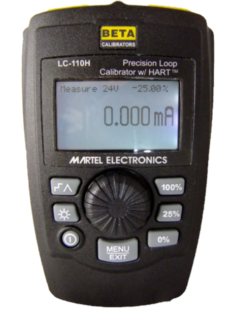 The Martel LC-110 and LC-110H are take the loop calibrator class to the next level. The new LC-110 series features a user friendly interface with dedicated buttons and a rotary encoder (Quick-Set Knob). This combination dramatically reduces the time it takes to measure, or source voltage or current and power up a loop. The rugged case is contoured to easily fit a technician’s hand and the large back lit graphics LCD is best in class. The LC-110H differs from the standard LC-110 in that it incorporates HART communications and supports a select set of the HART universal and common practice commands. This unique In the communicator mode the user will be able to read basic device information, perform diagnostic tests, and trim the calibration on most HART enabled transmitters. In the past, this could only be done with a dedicated communicator, high-end multifunction calibrator costing thousands of dollars, or a laptop computer with HART modem. The LC-110H will allow many more technicians to service and support HART devices. In addition to HART communications, we also gave the user the ability to get information out of the LC-110H. Need to quickly document the parameters of all the HART transmitters in your plant? Just add the BetaLOG HART software/cable to capture and upload to twenty configurations in either (.csv) or (.txt) format. We did particular not stop there! Transmitter How about fortroubleshooting? The ability to dataThe log data or log record tool data features on a selec table capacity of capture 9800 records interval or from 99 individual1to 60 seconds sessions. and Each a logging data sample contains variables, theLC110Hand the measurement, standard status all four conditions. process sample contains variables, theLC110Hand the measurement, process standard status all four conditions.